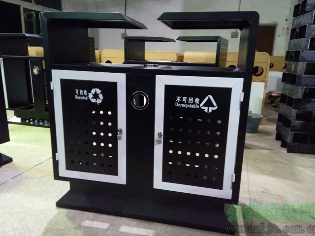 這款垃圾桶采(cǎi)用優質冷軋鋼板為原材料,經過專業激光切割機、折彎機等先進設備(bèi)剪板、折彎、衝孔、焊接、組裝、打磨後,再經過經驗(yàn)豐富(fù)的專業工人進行防(fáng)腐(fǔ)、防鏽、噴塑、絲印處(chù)理;外邊簡(jiǎn)潔大方、時尚美(měi)觀;表麵防水防鏽防腐蝕;桶身堅固耐用,經久不壞;鍍鋅內膽適用壽命更長(zhǎng);底座帶有膨脹螺絲穩(wěn)定不可移動,防(fáng)風(fēng)吹,防盜;帶煙灰盅(zhōng)能(néng)更好的清潔周圍環境;以黑色為主色,覆蓋於桶身;絲印的垃圾桶圖案用白色表示;顏色對比鮮明和(hé)諧,簡潔(jié)大方,實用(yòng)美觀,還可根據客戶需(xū)求定(dìng)製;桶底部帶有膨脹螺絲(sī)釘,請當地工人(rén)即可(kě)安(ān)裝,安裝好即可使(shǐ)用,建議固(gù)定在(zài)平坦水泥地上;內膽安(ān)全不易丟失,環衛工人使用是打開鎖,前後打(dǎ)開(kāi)門,取出內膽傾倒(dǎo)垃圾,倒完後,把內桶(tǒng)放回,鎖好;適用於景區公(gōng)園、市(shì)政街道、小區物業、醫院學校、商場遊樂園等戶外場所。