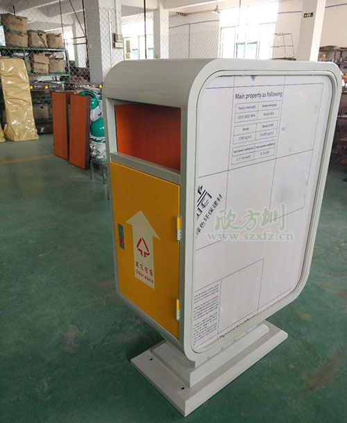 整體式廣告垃(lā)圾桶,例如欣方圳的J24廣告垃圾桶(雙麵)則在加工的時候整體(tǐ)成型(xíng),一般正反兩麵預留廣告(gào)位,側麵開口作(zuò)為垃(lā)圾桶(tǒng)投入口,垃(lā)圾桶內膽直接放在箱內。清運時用專用鑰匙打開鎖,從側麵預留的清運門取出內桶清(qīng)理(lǐ)垃圾。生產時,使用鍍鋅鋼板或者(zhě)不鏽鋼加工(gōng)框架,關鍵轉角(jiǎo)部位加以角鋼(gāng)加固,防止變形,然後進行表麵打磨拋光,鋼板烤漆噴塑。整體結(jié)構牢靠,箱體箱底連體式(shì)設計(jì),底座可固(gù)定地上,抗打擊,抗風力(lì)。廣告垃圾桶燈箱具有、投入成本低(dī),直接受眾效果好。相比(bǐ)較其(qí)他形式的廣告而言垃圾桶廣(guǎng)告(gào)的成本相當低而且是直(zhí)接麵向廣告受眾,貼進消費者,形成高(gāo)覆蓋網絡(luò)規模廣(guǎng)告效應。