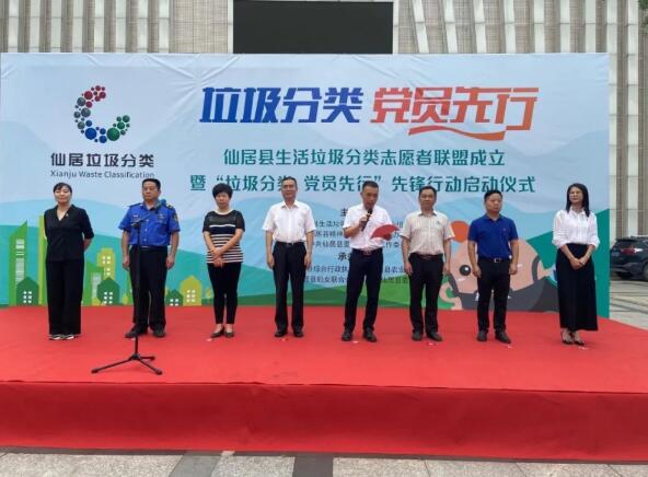 8月11日上(shàng)午,仙居縣精品网站999www辦積極響應(yīng)市精品网站999www辦號召,在仙(xiān)居劇院廣場舉行生活垃圾(jī)精品网站999www誌願者聯盟成立暨“垃圾分(fèn)類 黨員先行”先鋒啟動(dòng)儀式。