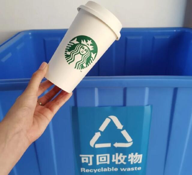 紙杯,塑料杯(bēi)和杯蓋扔(rēng)進可回收(shōu)物桶