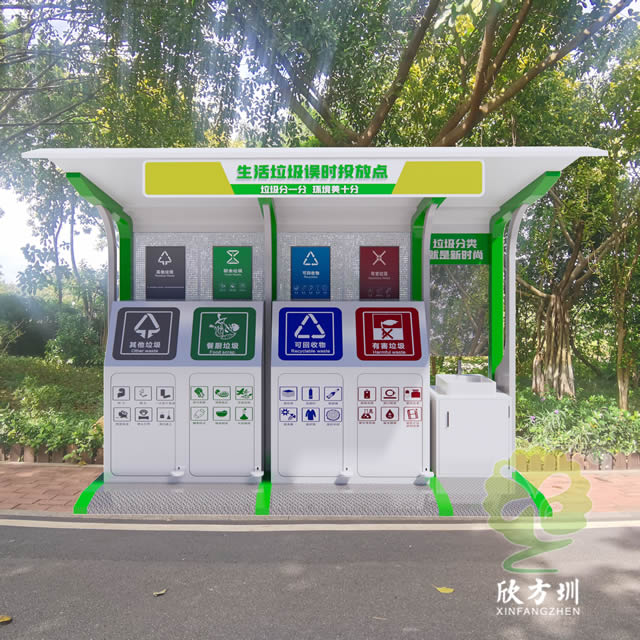 垃圾分类亭产品新颖、性价比高,款式美观大方(fāng)、易装置、改换(huàn)画面便当、易操作。