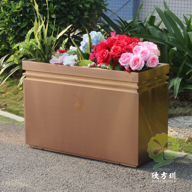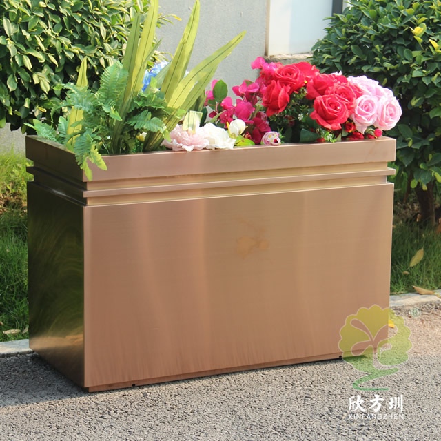 二、戶外拉絲玫瑰金不鏽鋼(gāng)方形花盆的擺放位置