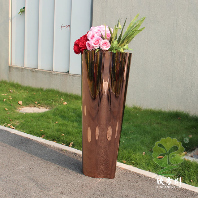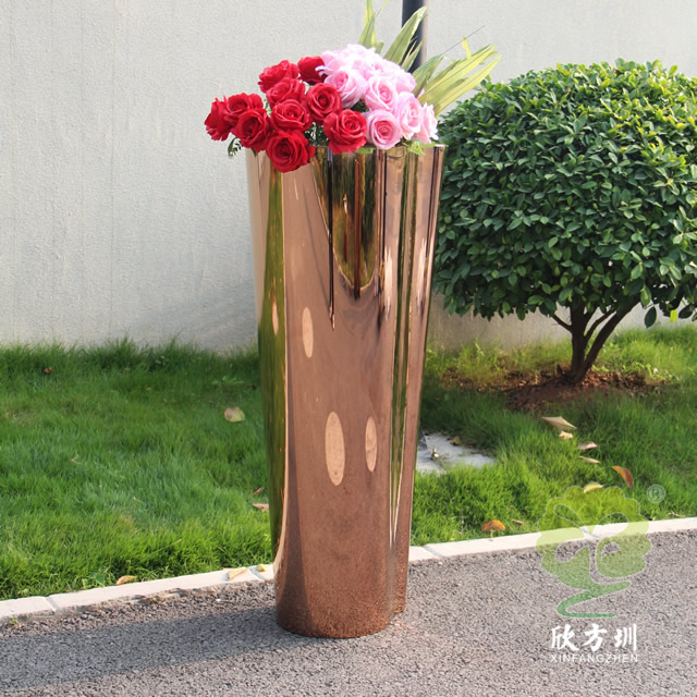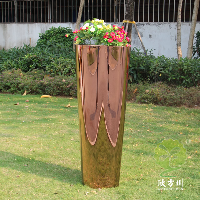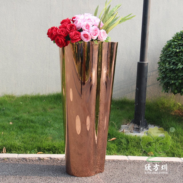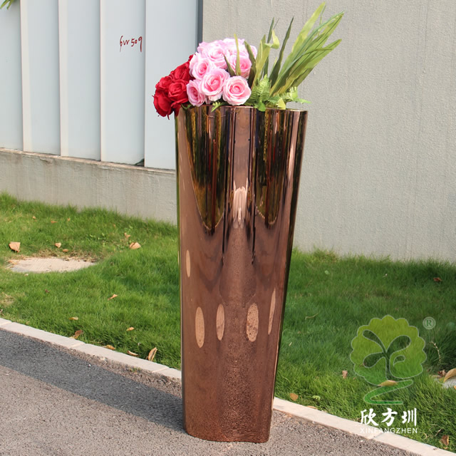 室(shì)內鏡麵玫瑰金不鏽鋼花(huā)盆組合