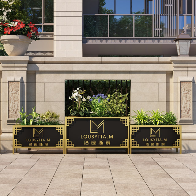 二、戶外電鍍鈦金長方形不(bú)鏽鋼(gāng)花箱的擺放位置