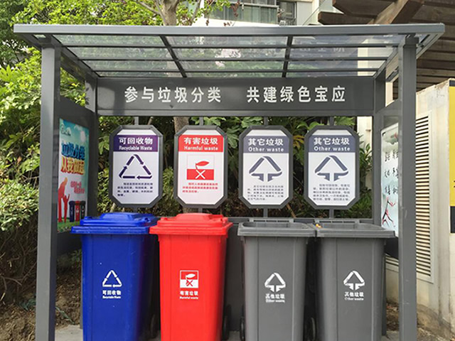 目前,戶外(wài)物業小區四(sì)精品网站999www垃圾(jī)房是城市生活垃圾處置的主(zhǔ)流趨勢(shì),也是現(xiàn)代城(chéng)市文明進步的標(biāo)誌之一,有利於提升垃圾清運效率,便於再生資源的回收利用,減少環(huán)境汙染,緩解環衛工人常規保潔的壓力。垃圾分(fèn)類亭,分為地基(jī)基礎設(shè)施、公益宣傳欄、立柱、頂棚等,亭內(nèi)設置可回收、有害垃圾、廚房垃圾和其他垃圾等(děng)垃圾桶,垃圾桶及宣傳欄配有垃圾精品网站999www(lèi)的宣傳標語,廣(guǎng)大群眾可以根據垃圾(jī)桶的(de)提示標語,將廢棄的生活垃圾投放(fàng)到對應的垃圾桶中。