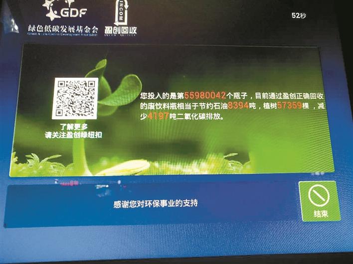 8月2日(rì),韓女士又收(shōu)集了家中20個塑料飲料瓶。這一次,她又獲利1元錢。屏幕上還顯示了(le)她所投的(de)瓶子是深(shēn)圳第56023937個瓶子,和上次的數量相比(bǐ),多了43895個。這也意味著,不到一周時間內,深圳人向這(zhè)家回收公司(sī)投放了4萬多個塑料瓶。