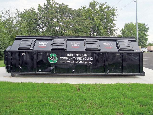 美國(guó)西肯塔基大學校園裏的單流回收(shōu)垃圾桶,從標誌上看主要混合放紙張和錫、鋁等金屬。
