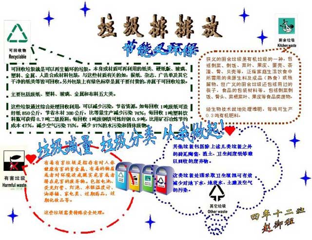 我(wǒ)国是世界垃圾最大生产国,但是垃圾处理(lǐ)效果却落后于大部分国家。对于(yú)垃(lā)圾来说,无论哪种处理方式都会对环境产生危(wēi)害,增加(jiā)社会负担,造成资(zī)源浪(làng)费。所以解决垃圾处理问题的最好办(bàn)法就是,改变生活方式,减少垃圾制造。于此,垃(lā)圾分(fèn)类宣传必(bì)不可少,以下是学生常用的环(huán)保垃圾分类手抄报,可以帮助学生理解生活垃圾(jī)分类的知识与现状(zhuàng)。