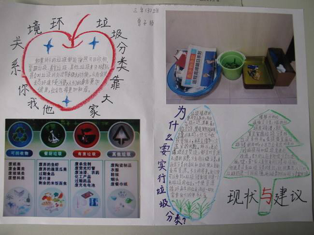 为什么要实(shí)行(háng)垃圾分类呢?因为我国每人每年(nián)平均产生300公斤(jīn)垃圾;许多城市都面(miàn)临垃圾围城的(de)局面;而生活垃圾被认为是最具开发潜力的(de)、永不(bú)枯竭的“城市矿藏”,是“放错地方的资源”;垃圾(jī)分类后被送到工厂而不是填埋场,既可以减少占地,降低垃圾处理成本,又(yòu)避(bì)免了填埋或焚烧所产生的环境污染,还(hái)可以变废为宝;垃圾分类(lèi)收(shōu)集是垃圾资源化利用的前提和基础,是发展循环经济的(de)突破口,具有(yǒu)社会(huì)、经济、生态三(sān)方面的效益。以下生活垃圾分(fèn)类手抄报有分类垃圾桶(tǒng)网收集整理,请勿作商业用途。