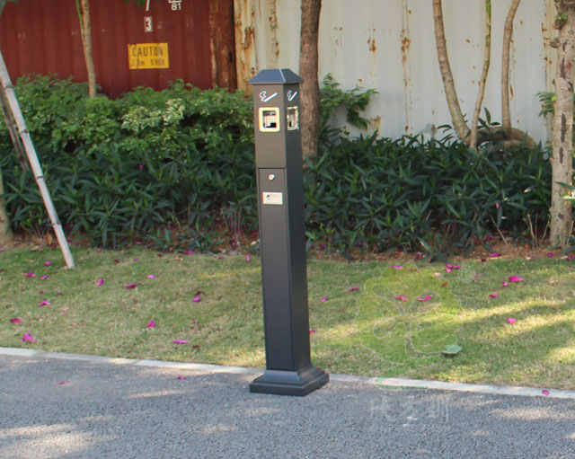 C633不鏽鋼煙灰柱采(cǎi)用優質(zhì)不鏽鋼剪切、組裝、焊接、絲印而成,它包括外套管、支座、內套管、煙灰盒、底(dǐ)座(zuò)。外套管的底端固定(dìng)連接在支座上,外套管的(de)側(cè)壁上設有煙蒂置入口,內套(tào)管用於(yú)集中收納從(cóng)外套管的煙(yān)蒂置入口投入(rù)的煙蒂,內套管設在外套管的內管腔中,內內套管的開口端朝上,煙蒂置入口與內套管的開口相連通,以使得從煙蒂置入口投入的煙蒂可從內(nèi)套管的開口端落入到內套管的內管腔中;