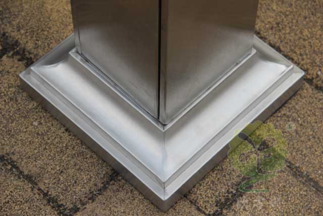 C-279C金(jīn)屬煙灰柱規格250*250*1185mm,呈長條傳,側麵有三角鑰匙(shí),可以(yǐ)打開側門,方便清理位於內(nèi)套管的煙蒂煙灰,底座分兩(liǎng)種,一種是室內采用的,在底部裝有防滑墊,一種是戶外采用的,底(dǐ)部使用膨脹螺絲固定。
