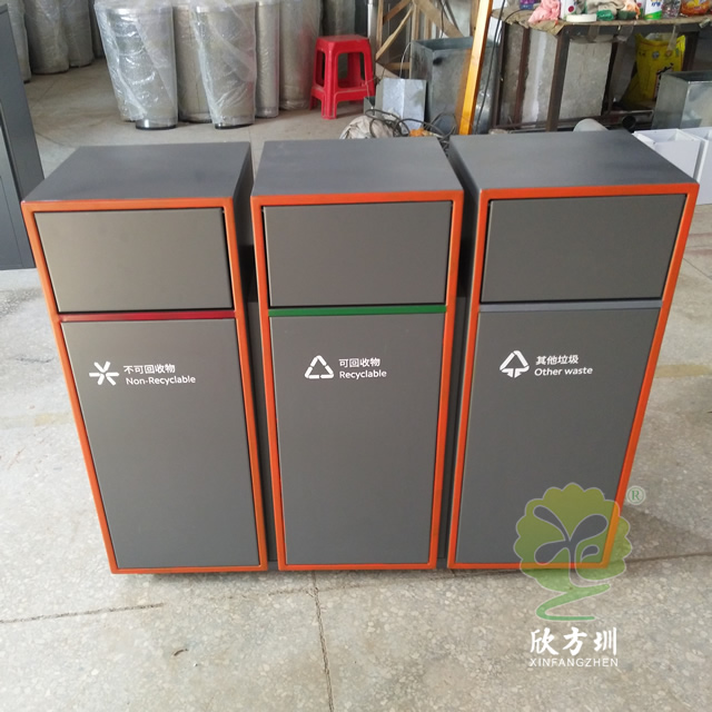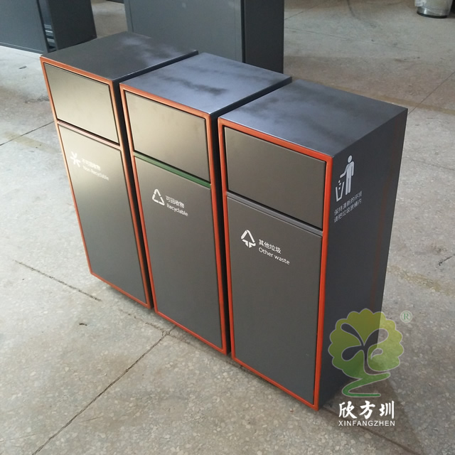 噴塑組合式不鏽(xiù)鋼分(fèn)類(lèi)垃圾(jī)箱采用201#,202#,304#優質不鏽鋼(gāng)材料模壓成(chéng)型,堅(jiān)固耐用,不(bú)易破損;耐火安全,抗高低溫,適合各種惡(è)劣(liè)氣候(hòu)條件(jiàn);金屬亮澤(zé),高雅美觀,廣泛適用於各種機場、商場高檔(dàng)場所;內外表麵光潔,減少垃圾(jī)殘留,易於清潔;配置鍍鋅板內桶,便(biàn)於垃圾清倒;激光切割開料,尺寸精準,投口無縫焊接成型,打磨拋光處理圓滑不割手。
