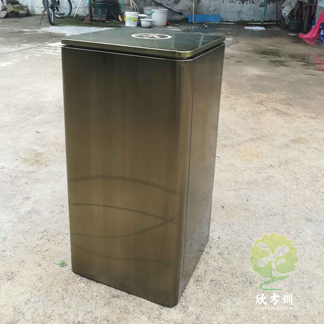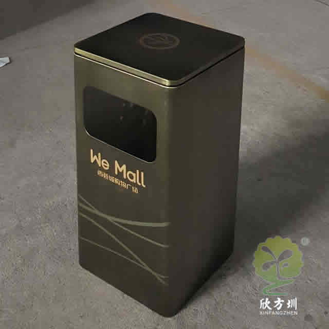 青古銅色商(shāng)場不鏽鋼果皮(pí)箱是欣方圳設計(jì)生產的(de)一款經典高檔垃(lā)圾桶,這款垃圾桶雖然使用(yòng)不鏽鋼製作而成,但是外形采用了(le)青色仿古銅豎行拉絲(sī)和做了(le)防指紋處理,使其看起來有一股(gǔ)自然青色仿古銅氣質,特別適合各種室內外購物商場、電梯口、等場景使用。這款(kuǎn)不鏽鋼垃圾桶外表經過防腐工藝處理,防水防腐(fǔ)蝕、經久耐用(yòng)、工藝(yì)精湛、物美價廉。如果你對(duì)這款垃(lā)圾桶(tǒng)感興趣,請直接聯係我們報價。