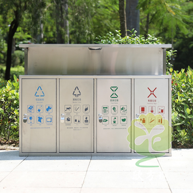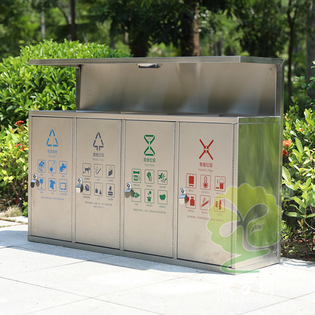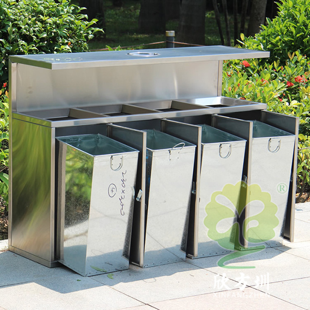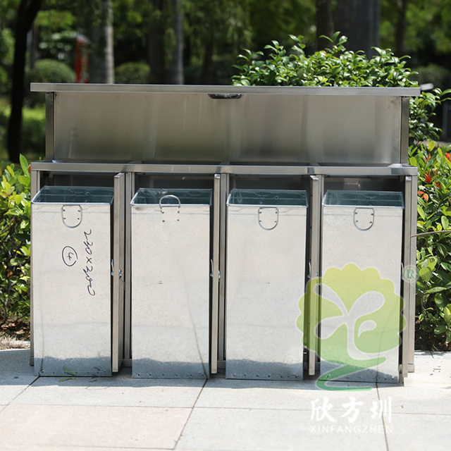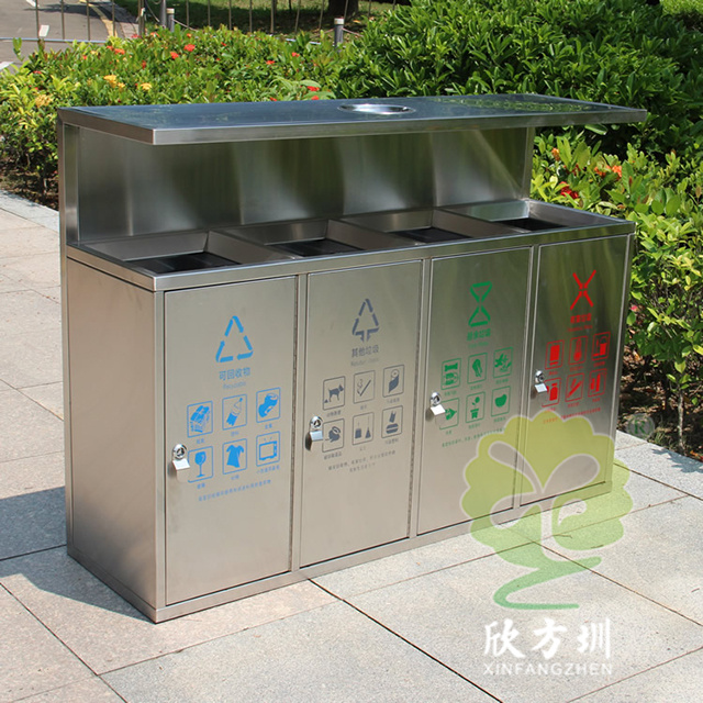 戶外市政街道四連體不鏽(xiù)鋼垃(lā)圾箱是欣方圳設計生產的一款經典熱銷垃圾桶,這款垃圾桶雖然(rán)使(shǐ)用不喜歡製作(zuò)而成,但是外形(xíng)采用了方形單筒(tǒng),使其(qí)看(kàn)起來有一股自然大(dà)方(fāng)氣質,特別適合各種曆(lì)史景區、戶外公園、別墅小區、學校廣場(chǎng)等場景使用。這(zhè)款垃圾桶外表(biǎo)經過防腐工藝處理,防水防腐蝕(shí)、經久耐用、工藝精湛、物美(měi)價廉。如(rú)果你對這款垃圾桶感興趣,請直接(jiē)聯係我們報價。