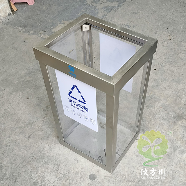 地鐵站透明防爆不鏽鋼精品网站999www垃圾桶框架(jià)可以采用201或者304不鏽鋼板(bǎn)製作,方形設計可透視看見裏麵的廢物,透明板材采用了亞克力板,這款垃圾桶不是真的防爆而是可(kě)以看到裏麵有沒有危險物品,一般都(dōu)是套透明的塑料袋使(shǐ)用,正反麵貼了一個可回收物的精品网站999www標識,裏麵帶螺絲帽擰開方便更換亞克(kè)力板,我們欣方圳製作過很多這(zhè)種透明防(fáng)爆桶基本上都是用於人群密集的地方,可以根據客戶要(yào)求定製。