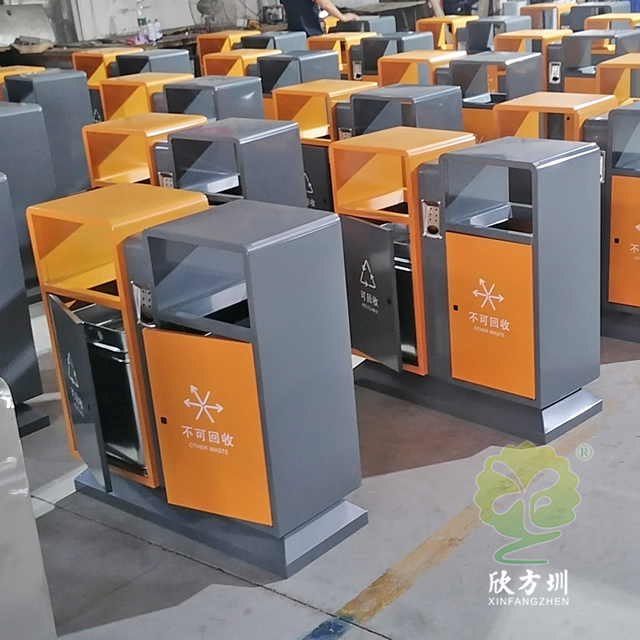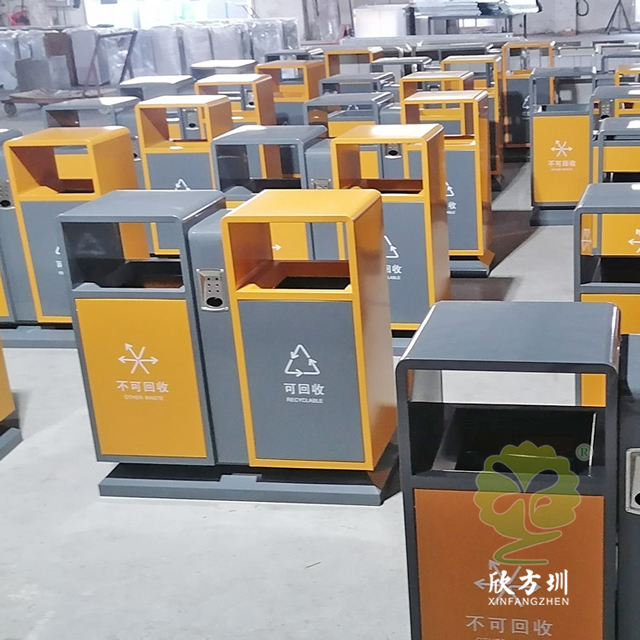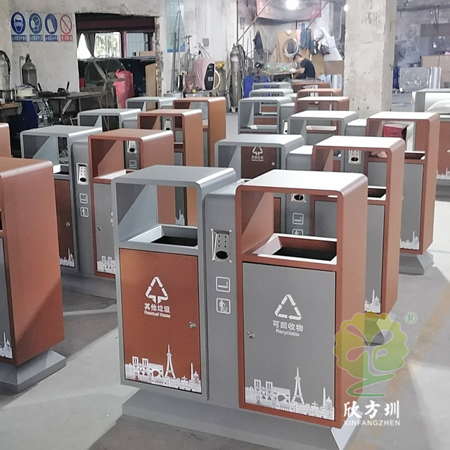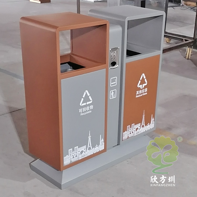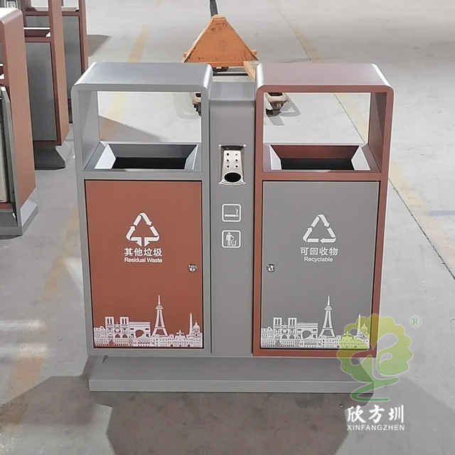 戶外城市(shì)道路不鏽鋼(gāng)精品网站999www(lèi)垃圾箱采用了201不鏽鋼板(bǎn)製造(zào)而(ér)成,如果客戶想減少(shǎo)成本可以(yǐ)選擇鍍鋅板或(huò)冷軋鋼板製作,圖片上的這兩款都差不多隻是底座(zuò)不一樣,這款垃圾桶是很常規的一個款式,正反麵絲印了最新的國標(biāo)精品网站999www標識,噴塑米白色、和(hé)黃色以(yǐ)及巧克力色,城市圖案采用了絲網(wǎng)印刷,上麵(miàn)雙麵(miàn)中心位置帶滅煙盒(hé),噴塑可(kě)以打樣做色板。