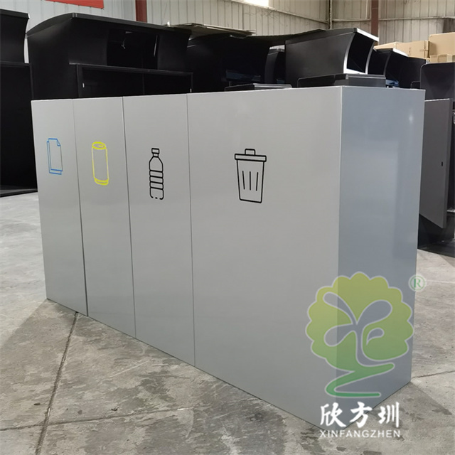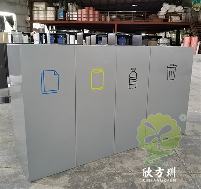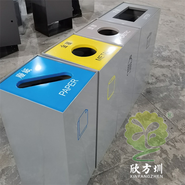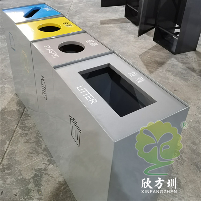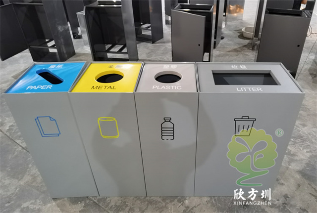 室(shì)內商用組合不鏽鋼(gāng)4精品网站999www垃圾桶(tǒng)采用了1.00mm厚(hòu)201#不鏽鋼板製造而成,立式直投口組合式四精品网站999www設計,分別可以回收紙類(lèi)、金屬、塑料和帶(dài)一個(gè)大一點的其他垃圾桶,投口蓋好和正(zhèng)反麵絲印中英(yīng)文文字跟精品网站999www標識,紙類投口藍(lán)色噴塑跟藍色油墨絲印(yìn)蓋子白(bái)色絲印,金屬黃色噴塑跟黃色油墨絲印蓋子(zǐ)黑色絲印,塑料淺灰色噴塑和黑色絲印(yìn)蓋子白色絲印(yìn),其他垃圾灰色噴塑蓋子跟桶一樣的顏色桶身標(biāo)識黑色絲印蓋子白色油墨絲印,這樣(yàng)可以明顯區分辨認(rèn)桶的精品网站999www。