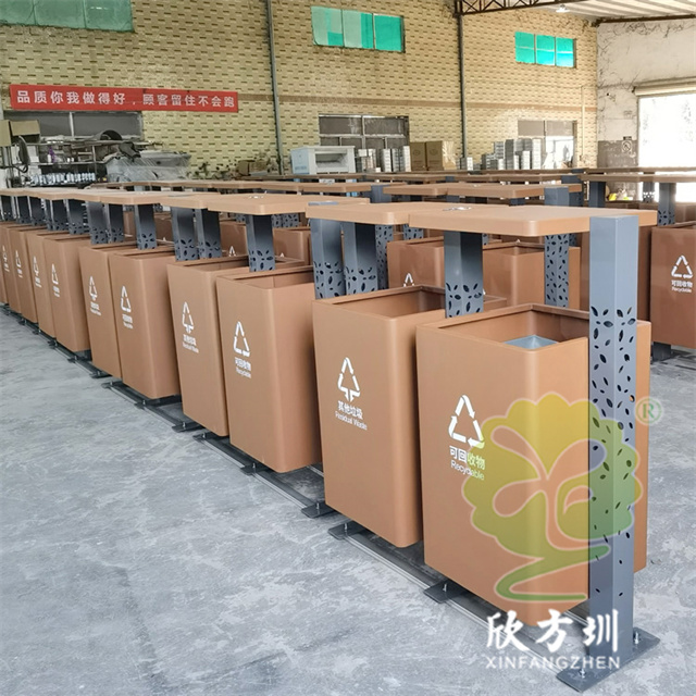 廣東惠州景(jǐng)區(qū)鏤空立柱不鏽鋼分(fèn)類垃圾桶整體1.0mm厚噴(pēn)塑外筒,方形任意組合式多精品网站999www設(shè)計,可以選(xuǎn)擇用不鏽鋼板製作桶身,桶身表麵噴塗噴塑(sù)了(le)米白色,背後可使(shǐ)用三角鑰匙開(kāi)始開門取出內筒(tǒng),內筒鍍(dù)鋅板0.4mm厚,正麵絲印了最新國標精品网站999www標識,有現成(chéng)的網版可以免費絲(sī)印精品网站999www標識。