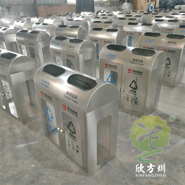 陝西透明防爆不鏽鋼精品网站999www(lèi)垃圾桶外筒201不鏽鋼,1.2mm厚度(足(zú)1.12mm)用戶定製了兩種規格兩(liǎng)精品网站999www和四精品网站999www的,這款果皮箱不含(hán)內筒,桶身正麵開門(mén),正麵和兩個側麵有透(tòu)明亞克力板4mm厚度(足(zú)3.75mm),桶身正麵絲印精品网站999www標識和西安地鐵的LOGO,投口(kǒu)粘黑色膠條(tiáo)有(yǒu)效防止割到手,可以打(dǎ)木架(jià)或者紙箱包裝,帶導軌和彈(dàn)簧。