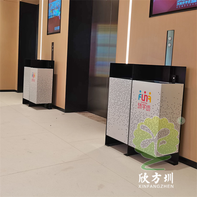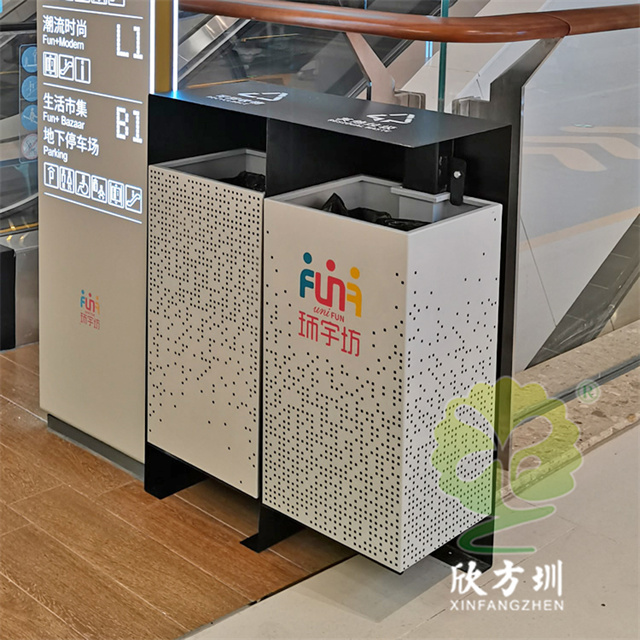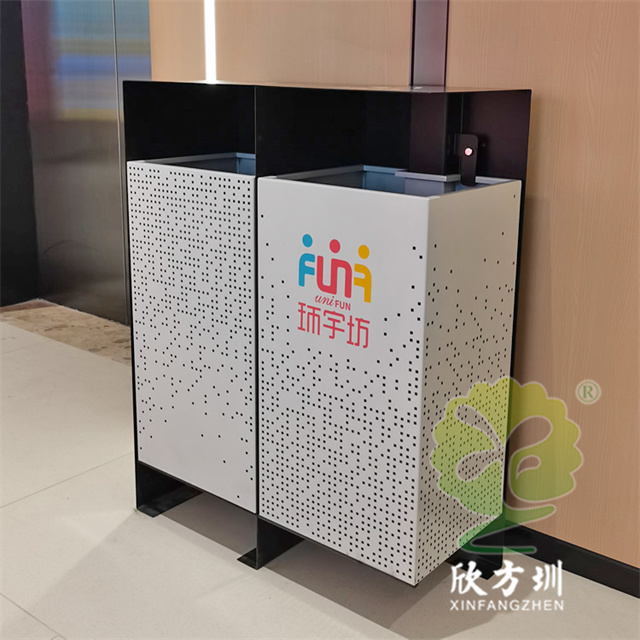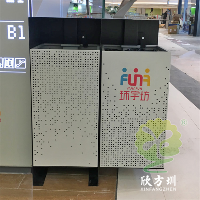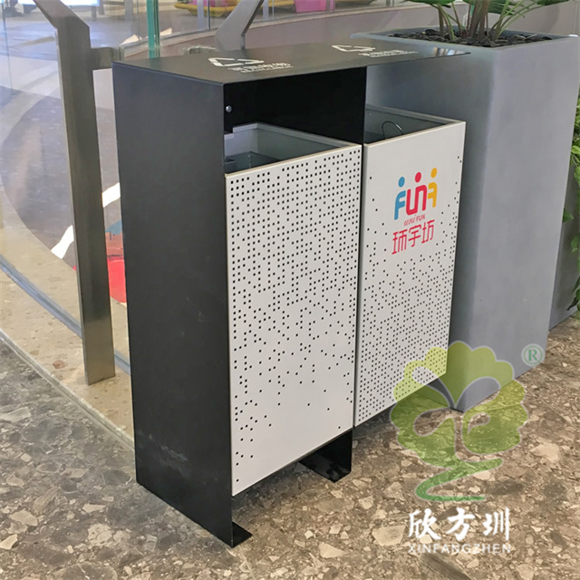 四川商場鏤空加厚(hòu)不鏽鋼精品网站999www垃圾桶可以選擇用鍍鋅(xīn)板、冷軋鋼板或者不鏽鋼板製造,這款垃圾桶框架比較厚實能夠(gòu)防止割到手,表麵噴塗噴塑俗稱噴粉,外部框架噴塑黑色箱體(tǐ)噴塑(sù)淺灰色,箱體圓點鏤空,這款(kuǎn)垃圾(jī)桶是一(yī)家商場定製了兩款,一款用於商場室內一款用於戶外的廣場,桶(tǒng)身(shēn)正反麵絲印的企業(yè)的精品网站999www標識。