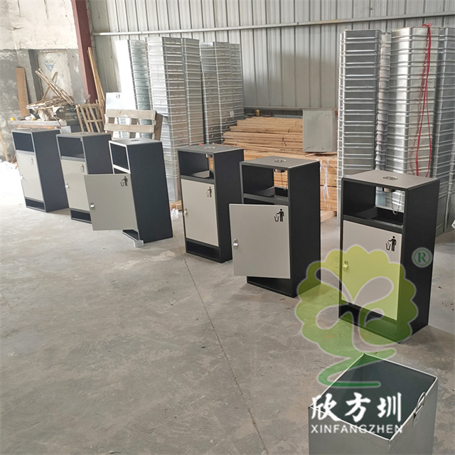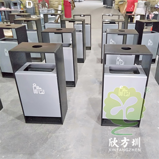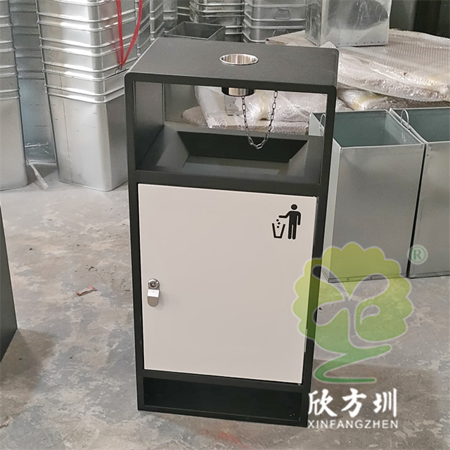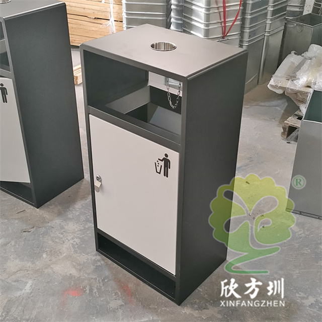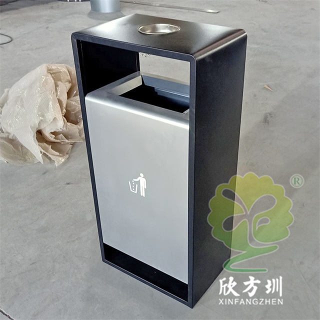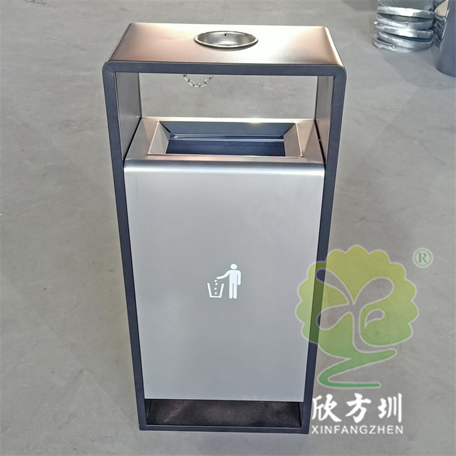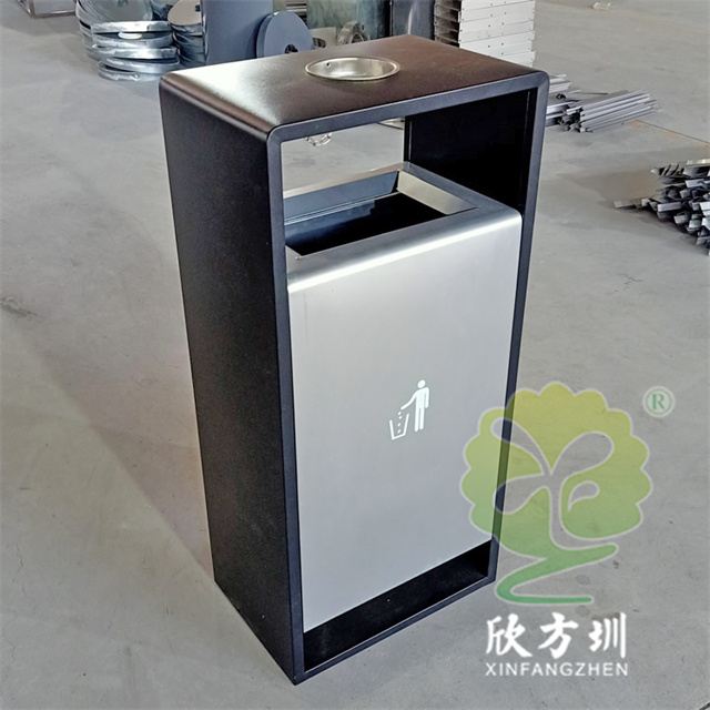 戶外小區簡易方形噴塑不鏽鋼垃圾桶可以選用不(bú)鏽鋼或者鍍鋅板製作,這款果皮箱框架(jià)噴塗黑色塑(sù)粉桶身噴塑銀色,表麵(miàn)可以根據用(yòng)戶要求定(dìng)製,頂部中心位(wèi)置帶圓形的煙灰(huī)盅,投口帶折邊,桶身離地麵比較高也有效避免(miǎn)雨水進入,可以絲印logo人頭標或精品网站999www標(biāo)識。