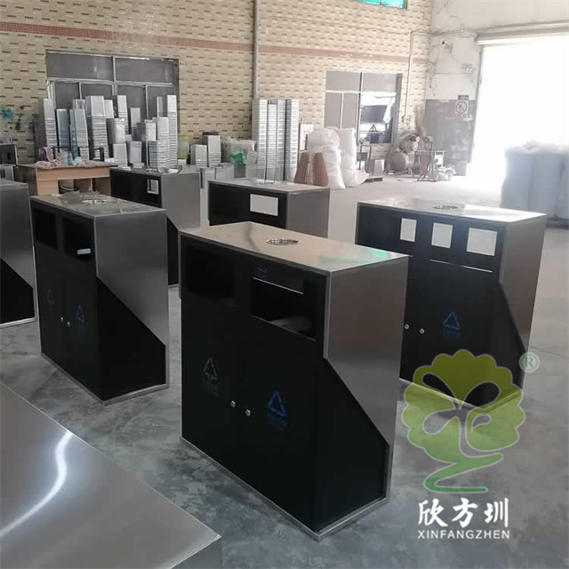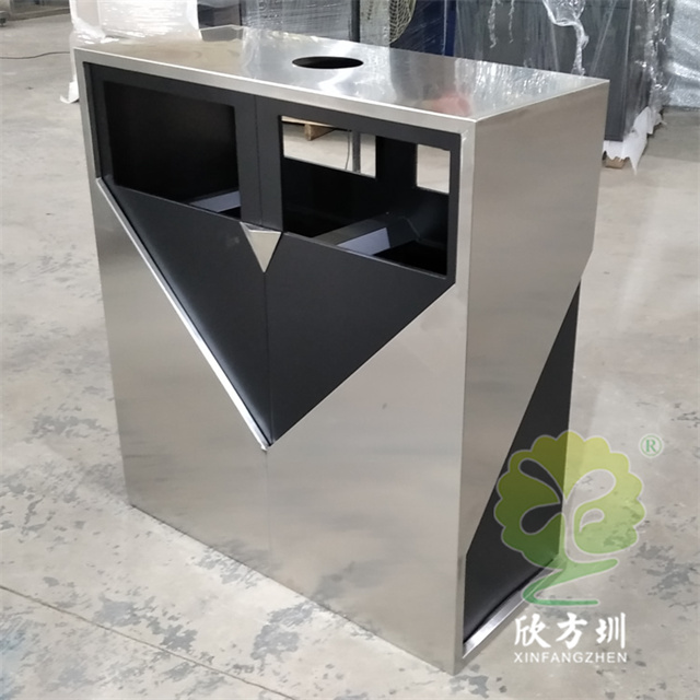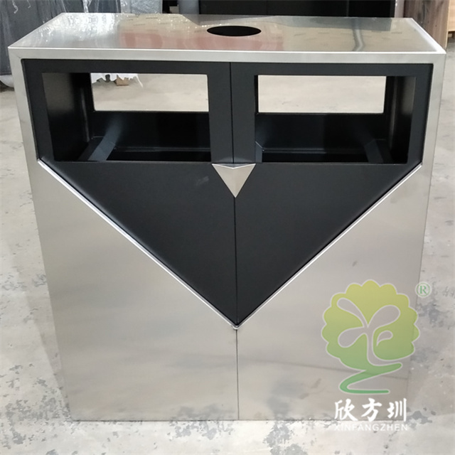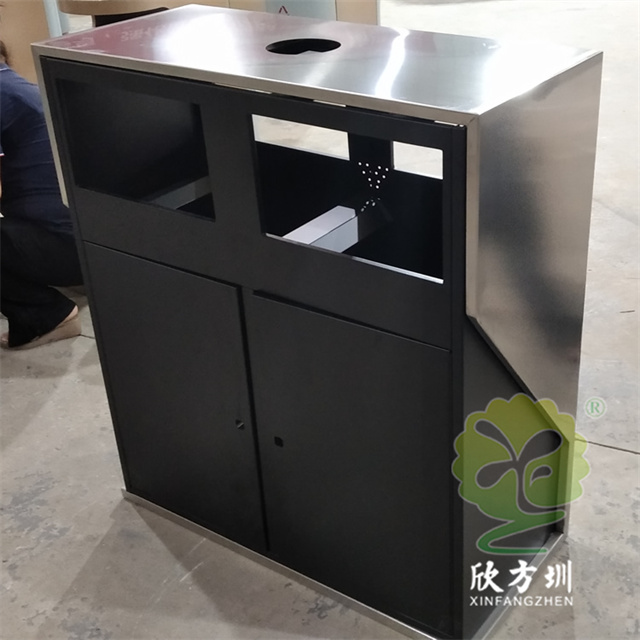 戶外小區噴塑不鏽鋼精品网站999www(lèi)垃圾桶采用了304不鏽鋼板1.0mm製造而成,室外(wài)兩連體方形設計,創意框架雙層雙層不鏽(xiù)鋼,內側不鏽鋼黑色噴粉,頂(dǐng)部帶個煙灰盅,背麵三角鑰匙雙開(kāi)門可以取出內(nèi)筒,正麵絲印單色國標精品网站999www標識。