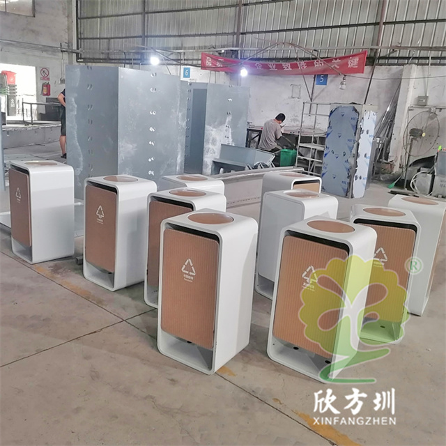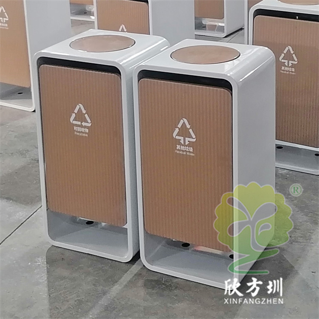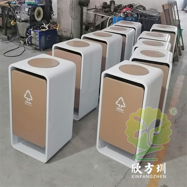 室內(nèi)商用噴粉UV打印不鏽鋼精品网站999www垃圾桶采(cǎi)用了1.5mm304不鏽鋼板(bǎn)製作(zuò),抽拉式滑軌組(zǔ)合式設(shè)計,桶身(shēn)外(wài)框白色噴粉,圓形搖擺蓋密閉式,門板UV打印工藝,門(mén)板正麵可以定製(zhì)絲網印刷國標中英文精品网站999www標識以及企業logo。