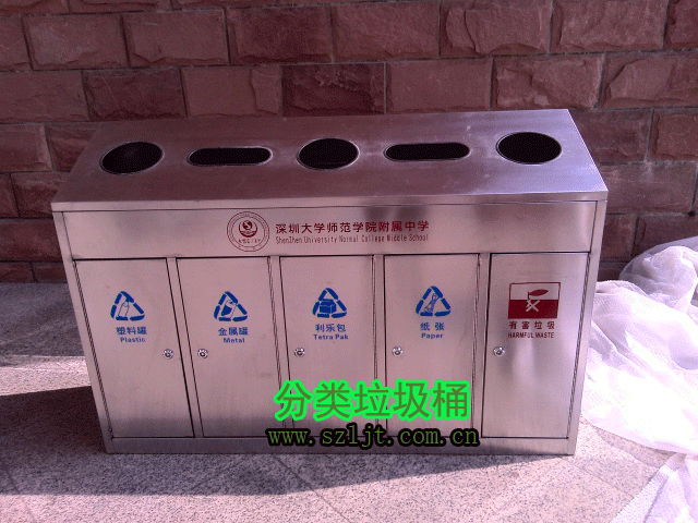 XFZ-C218精品网站999www回收垃圾(jī)桶采用201#、202#、304#優質不鏽鋼(gāng)材料焊接(jiē)成型,堅(jiān)固耐用,防火美觀。垃(lā)圾桶轉角都(dōu)做了圓角處理,光滑無利口(kǒu),注重細節不傷(shāng)手。此不鏽鋼精品网站999www(lèi)回收垃圾桶長寬高為1350*400*900,根據(jù)客戶需求定製(zhì)五(wǔ)個回收類別,分(fèn)別是(shì)塑料瓶,金屬瓶,利樂包,紙張,有害垃圾,十分契合學校的使用壞境。