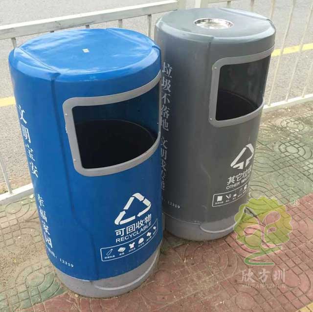 2、該玻璃鋼垃圾桶(tǒng)桶身上烤漆上色,簡潔美觀,自(zì)然大方,為環保(bǎo)戶外垃圾桶.